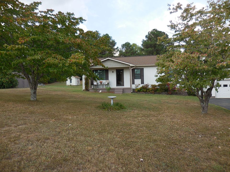 Country home in quiet neighborhood with no thru traffic. On two separate lots (2.64 acres total) fenced, with small wooded area. Plenty of room for a garden, pets, small animals, and children. Blueberry bushes, persimmon tree, fig trees, and dogwoods. Paved driveway and attached double garage (672 sq. ft.). Two storage buildings, a deck and sunroom with wood stove. A bonus room which can be used as an office, mudroom, playroom, etc. includes double closet. Isolated master suite (24 x 28 ft.) over garage built in 2003 includes walk-in closet, a double closet with mirrored folding doors, large bathroom with shower and double vanity. All season sunroom adjacent to kitchen/laundry has Dutchwest convection wood stove. New Hymax solid surface countertops with integrated double sink and new flooring in kitchen 2013. New double hung vinyl windows with argon gas added to original structure in fall, 2016. New dishwasher and Kohler kitchen faucet installed fall, 2016.