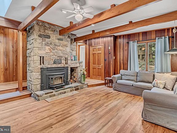 Extraordinary single family home is a one of a kind rare find and a must see! This home features handcrafted carpentry wood & stone throughout, wood beams in living room with a wood burning stone fireplace, hardwood floors, new roof, custom paint, new water filtration system, over-sized well-lit drive way, walking bridge over dry bed creek, river access, and so much more..... All this with enhanced nature style gardens setting, great hiking trails, and a kids play house...