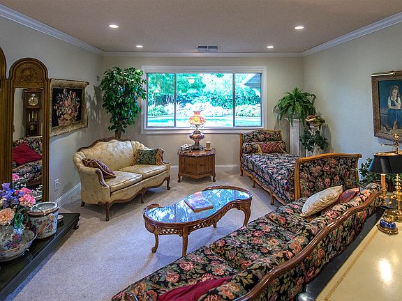 Find sanctuary in Lake Redding Estates! Contemporary classic home has very private feeling backyard with gorgeous mature landscaping. New roof being installed! Lots of tile flooring and crown molding throughout, Livingroom and Familyroom with fireplace. Spacious Master Suite with great views of the pool and water feature. Outbuilding in back with half bathroom. On a cul de sac in one ...read More