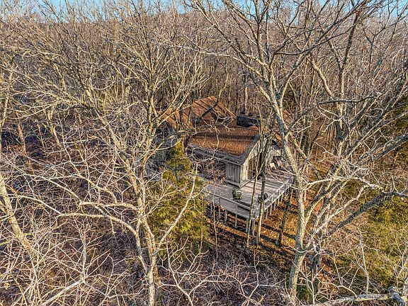 "Tree House" on private 11.4 acres on hilltop with 360 views. New city water and sewer to house. Agent must be present. Selling "as-is".