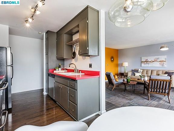 This cool and hip 2 bedroom, 1 bath condo is ideally located in Oakland's highly sought-after Adams Point neighborhood. Light and airy with pops of color, this unit offers the perfect mix of urban chic with modern flair. The kitchen features stainless steel appliances and a dining area accented by a stylish and sophisticated lighting design. Grab your morning coffee, step out onto the balcony and admire the city views. With custom designed storage elements, it'll be easy to stay neat and organized. Just minutes from Lake Merritt shops and restaurants, BART, and the bustling and vibrant Uptown neighborhood, you'll find something to keep you busy and happy every day of the week! Features include - 2 Bedrooms - 1 Bathroom - 812 sq. ft. (per tax records) - Built in 1961 - Wood floors / carpeting - Bright and airy - Open floor plan - Updated bathroom - Balcony with city views - 1 car garage parking space - HOA due: $392/mo. - Minutes from Lake Merritt shopping, dining, and BART
