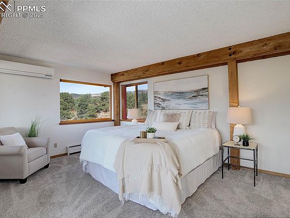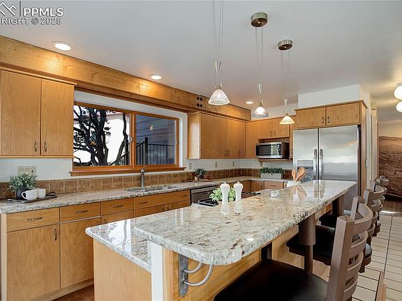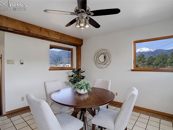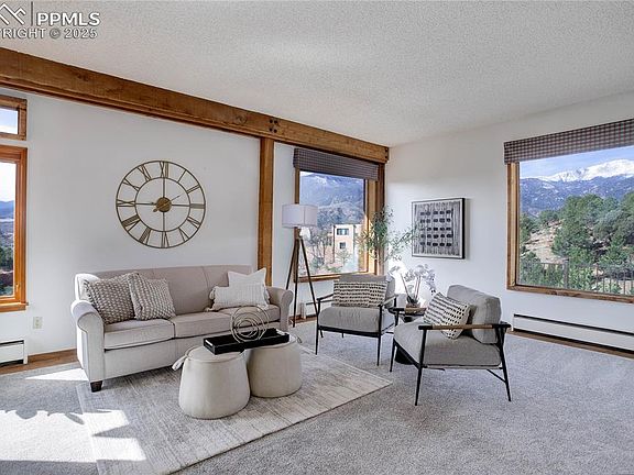 Beautiful home in a charming cul-de-sac with picturesque Pikes Peak views! This excellently updated property boasts a newer deck and siding, adding modern appeal to its classic charm. You'll love the easy access to both Colorado Springs and Manitou Springs, providing a perfect blend of urban amenities and small-town charm. Step inside to discover a meticulously maintained interior that radiates warmth and comfort with a striking integrated rock feature. The spacious living areas are perfect for both relaxing and entertaining, while the updated kitchen features ample counter space and a gas range oven for the avid cook. A superb primary suite includes Pikes Peak views, a sitting area, and private redwood deck. Three additional bedrooms provide accommodation for friends & family. Heating to the main level is forced air, while hot water baseboards keep the bedrooms cozy. Outdoor enthusiasts will rejoice at the proximity to some of the area's most renowned natural attractions. Enjoy a walking access to Garden of the Gods, explore the stunning Cave of the Winds, or visit the Manitou Cliff Dwellings - all just moments from your doorstep. The home’s exterior space is equally impressive with a large, deck perfect for summer barbeques and a beautifully rock outcroppings that offers peace and tranquility. The newer siding not only enhances the home’s curb appeal but also adds an extra layer of durability. Commuters will appreciate the easy access to major highways, ensuring a smooth drive to work or recreational destinations. It’s the perfect place to call home, offering both the comforts of modern living and the adventures of outdoor exploration.
