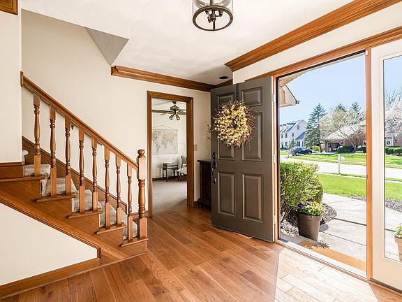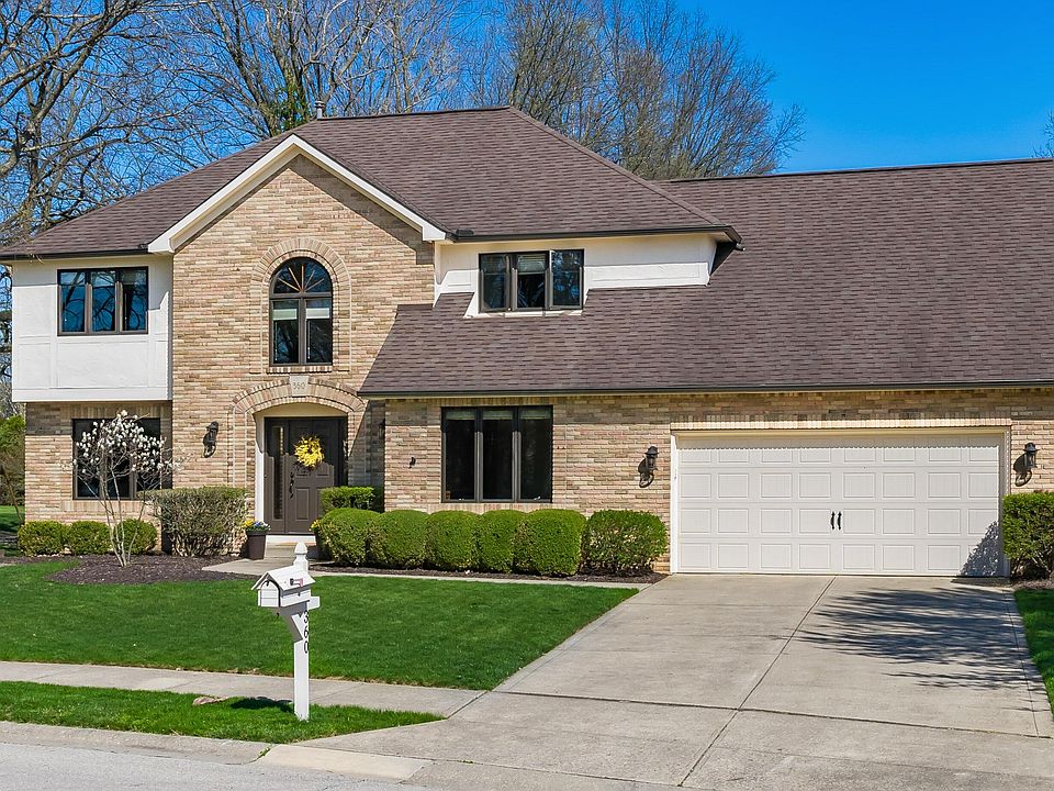 Welcome to this meticulously maintained 4BR home in the popular Olentangy Ridge community, less than a mile from the heart of downtown Powell. You will be greeted by beautiful new engineered hardwood floors, a bright private office and front den/sitting room. A formal dining room connects to the kitchen with granite countertops and high-end SS appliances. Traditional custom built-in shelving in almost every room! 2nd floor has brand new carpet, a huge primary suite with 2 large closets + spacious bath and 3 more bedrooms + full bath. The finished basement provides another 1000sf+ with loads of cabinets, wet bar+bev fridge and large storage room. Stunning 3 seasons room with exposed cedar overlooks this park-like backyard. Boasting 2900sf, this home has everything to welcome its new owner!
