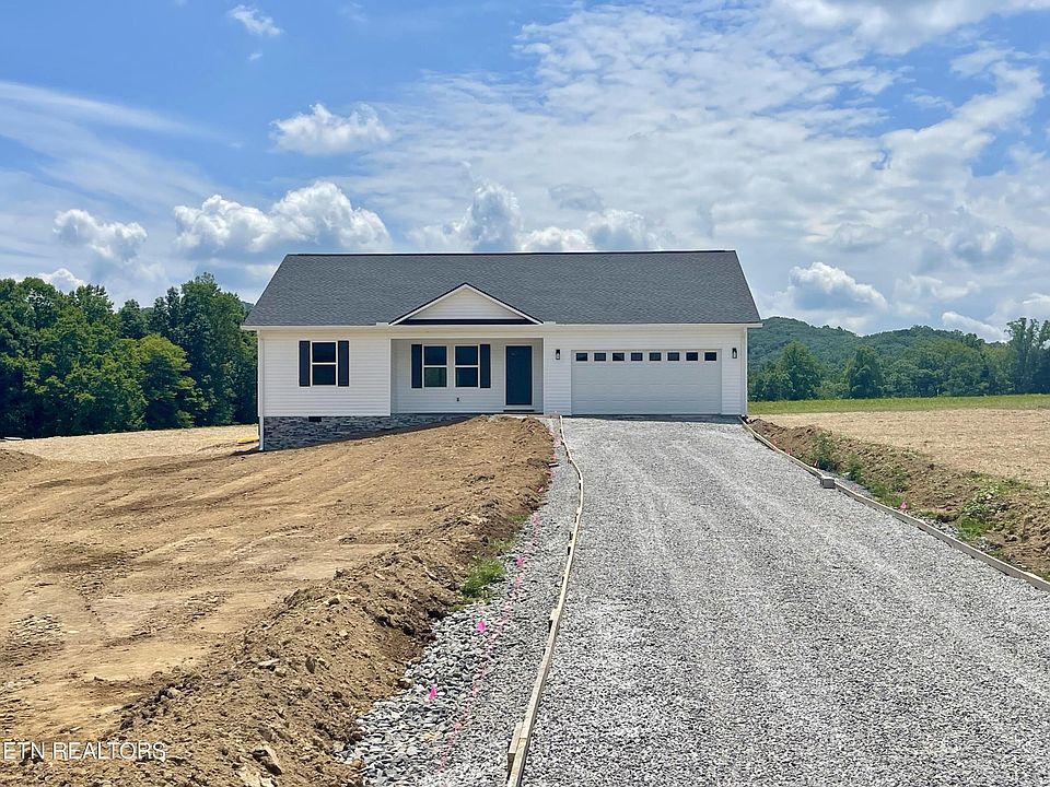 Gorgeous NEW CONSTRUCTION on 0.84 acres. Beautiful, open and useful Ranch plan with large back partially covered deck. 3 bedrooms and 2 full bath plan with a large open living area. Split bedrooms. High end finishes including luxury vinyl flooring and tile in wet areas as well as granite counters in kitchen and baths. Beautiful kitchen with large pantry and plenty of cabinet space. All brand new appliances. Separate large laundry room. Ventless Gas Fireplace with stack stone in the living room. Spacious walk in master closet. Gentle sloping front and huge mostly flat rear yard. Easy access to beautiful surrounding communities as well as Oak Ridge and Knoxville. Schedule your showing today.