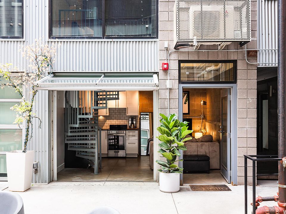 Super-hip Broadway Park loft on the main floor. Walk out your front door or open your full-size glass garage door to go directly to the fun and social courtyard. This industrial-modern designed space has a spiral staircase, and exposed brick, steel, glass, and concrete floors. Ideally located to access all downtown SLC has to offer. Restaurants, bars, shopping, Caputo's Market, farmers market, etc. In-unit laundry and secured building. Landlord pays hoa fee which includes google fiber, sewer, water, garbage, security for building and garage. Tenant only pays electricity. One secured parking spot is included. Owner/Agent Owner pays hoa which includes: security for building and parking. Sewer, Water, Garbage, Google Fiber.