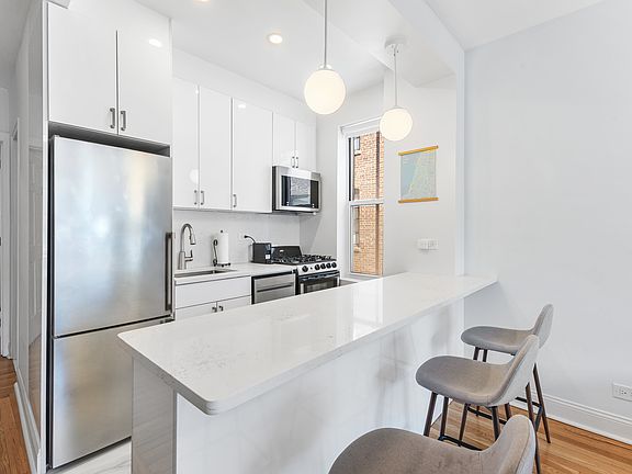 Inviting & Bright South & East Facing One Bedroom Apartment Features a Newly Renovated Open Kitchen with Brand New Quartz Countertop, Island & Backsplash & Large 12x24 Marble Tile Flooring. The Dining Area Adjacent tp the Open Kitchen, leaves plenty of room for entertaining in your South Facing Living Room. Windowed Bath features Marble Tile complete with Walk In Stand Up Shower, Floating Vanity and Modern Lighting. This Open One Bedroom Features plenty of Closet Space with 2 closets on entryway and an additional 2 Closets in the Bedroom, Modern LED Lighting throughout as well as through Wall A/C in both the living room and bedroom. The Clinton offers a wealth of amenities and is a full-service building featuring a newly renovated and cheerful lobby to welcome you home. Residents of this pet-friendly elevator building enjoy full-time doorman and live-in superintendent service, video security and laundry facilities. Storage and bike room available at an additional cost. The Clinton is located on a pretty tree lined street in the epicenter of Manhattan bordering the famed Billionaire's Row. This location provides instant access to the best dining, shopping and entertainment, all with Central Park just a 10 minute walk from your front door! You can really enjoy all that this wonderful city has to offer effortlessly. With it's close proximity and convenience to Midtown, Fifth Avenue and Madison Avenue shopping, Columbus Circle, Time Warner Center, Carnegie Hall, Broadway/Times Square, The Plaza Hotel, The Park Lane Hotel and The Ritz-Carlton. Nearby is the famed Restaurant Row with it's 90 plus years of history in serving up some of the best food this city has to offer and is ever expanding to include so many eateries on 9th Ave just outside your door. The designation of restaurant row became official in 1973 and at the dedication then Mayor John Lindsay said, "Where else in the world, except possibly Paris, could you get 16 of the best restaurants collected in such a short strip of land?". Hell's Kitchen, a neighborhood rich in History was the set of the famed West Side Story and lent Inspiration to Martin Scorsese 2002 film "Gangs of New York" but today's Hell's Kitchen is a melting pot of vibrancy and luxury built over a rich history of stories told in movies, books and the ghosts of Hell's Kitchen Past, it is a neighborhood now, most refer to as Clinton sprinkled with Highrise Luxury condos and waterfront fun at it's Western border. The central location of 360 West 55th St also makes it incredibly accessible to public transportation, with easy access to Columbus Circle (A, B, C, D, & 1) and bus lines M31, M57and M11. The N, Q, R, and F subway lines are also just a 7 minute walk away. *Broker Fee Applies*