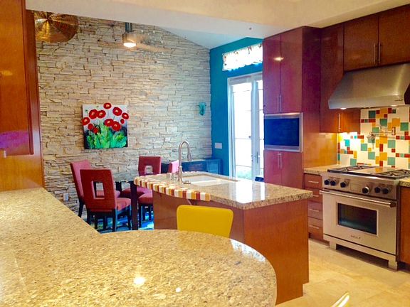 One of the best locations on this planet! Two short blocks west of Palm Canyon Drive in the heart of the vibrant Downtown Palm Springs' Historic Tennis Club District. This extraordinary townhome is spectacular and eye catching in every way. Stunning use of stone, travertine floors, designer carpet and custom window treatments throughout. Striking living room and family room open to kitchen generates a perfect flow. Slab granite counter-tops, colorful tile back splashes, quality cabinetry & high end stainless appliances represents a well appointed kitchen. The dramatic master suite with south-west facing covered veranda captures magnificent mountain views. Also on the 2nd level is a guest bedroom & bath and loft with wet bar & frig. The 3rd bedroom downstairs couples as the perfect office with state of the art revolving desk/wall bed with nearly effortless operation. Gorgeous community pool, spa, covered veranda with fabulous view & 2 fireplaces just steps away.