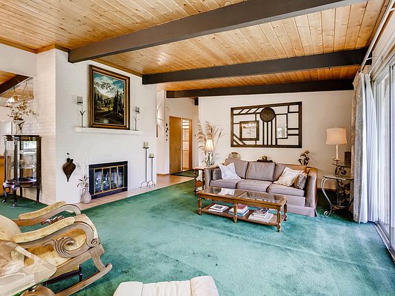 Old Littleton gem in Broadmoor neighborhood. Oasis-like yard offers tremendous privacy with lush landscaping, mature trees, gorgeous garden and covered patio. This 4 bedroom brick ranch has a mid-century modern feel and awaits your vision. Original hardwoods underneath carpet, entire wall of glass sliders, wood-burning/brick fireplace, semi-vaulted knotty-pine ceilings and exposed beams. Master bedroom features 4 piece master bathroom and linen closet. Full basement has abundant storage, workshop, laundry, fireplace, game room, non-conforming bedroom and 1/4 bath. Well maintained property with no major issues. Newer sewer line, furnace and central AC. Washer and dryer included. Oversized 1 car garage. Littleton Public Schools and near Highline Canal Trail. Same owner last 30+ years, very well maintained.