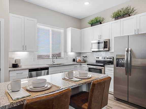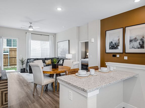 - Exterior features: Barbecue, Concierge, Covered Gathering Pavilion, Fire Pit, Flexible Rent Pay Options, Front Porch/Private Entrance, Granite Countertops, Guest Parking Solutions, High Ceilings, On-Site Maintenance, On-Site Management, Open Floor Plans, Outdoor Green/Open Areas, Pet Park, Pet-Friendly - No Breed or Size Restrictions, Private Backyards, Smart Home Technology, Stainless Steel Appliances, TV Lounge, Uncovered Guest Parking, Walking Paths, Wood Plank Style Flooring Throughout