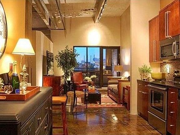 This HUGE space is a loft lovers dream! High gloss concrete floors throughout an open, spacious floor plan. This amazing NW corner unit loft offers the best view in the building of the KC skyline including the Kauffman Performing Arts Center. Kitchen features; custom cabinetry, stainless steel appliances, open to living area with plenty of room for a full sized dining room table set! Upgrades continue throughout with vaulted ceilings, numerous over-sized windows letting in tons of natural light, exposed concrete beams, track lighting, upgraded bathroom with high-end vanity, in unit laundry & more! This true loft is perfect for entertaining and has rare outdoor space with a large covered balcony. Low HOA dues unit includes two parking spaces, including climate controlled garage space, storage unit, onsite gym and amazing roof top deck with grilling area! Great walkability! Union Station is literally next door and the streetcar, Crown Center and Crossroads, restaurants, shops and events are all within a few minutes walk. This is the best of urban life!