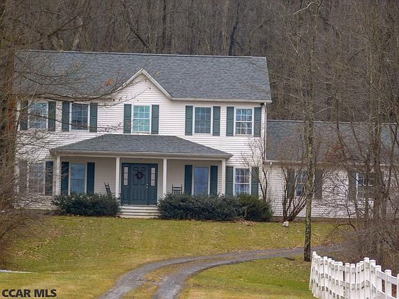 Lovely 21.53 acre country setting,minutes from PSU campus. Relax on the large front porch after a long day and take in the panoramic views. Modern 2-story house with new roof in 2013, 20'x30' pole barn,fenced pastures and woodland. Great location adjoining public lands & Rothrock State Forest with miles of horse trails and next to the Lion's Club ball field and picnic facilities. The home features an attached 2-car garage, easy-care hardwood floors, breakfast nook, large country kitchen, powder room,dining room, living room and a wood-burning stone fireplace. The second floor features a master bedroom suite, laundry area, additional bathroom and 3 bedrooms with lots of closet space. Public water & sewer! The unfinished basement is plumbed for a bath and has high ceilings.The property has been organically-farmed for 20 years and is bursting with wildlife. Fall asleep to the sounds of frogs in the spring-fed pond. Horses and Farm Animals permitted under Right to Farm Act.
