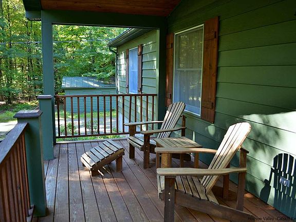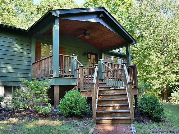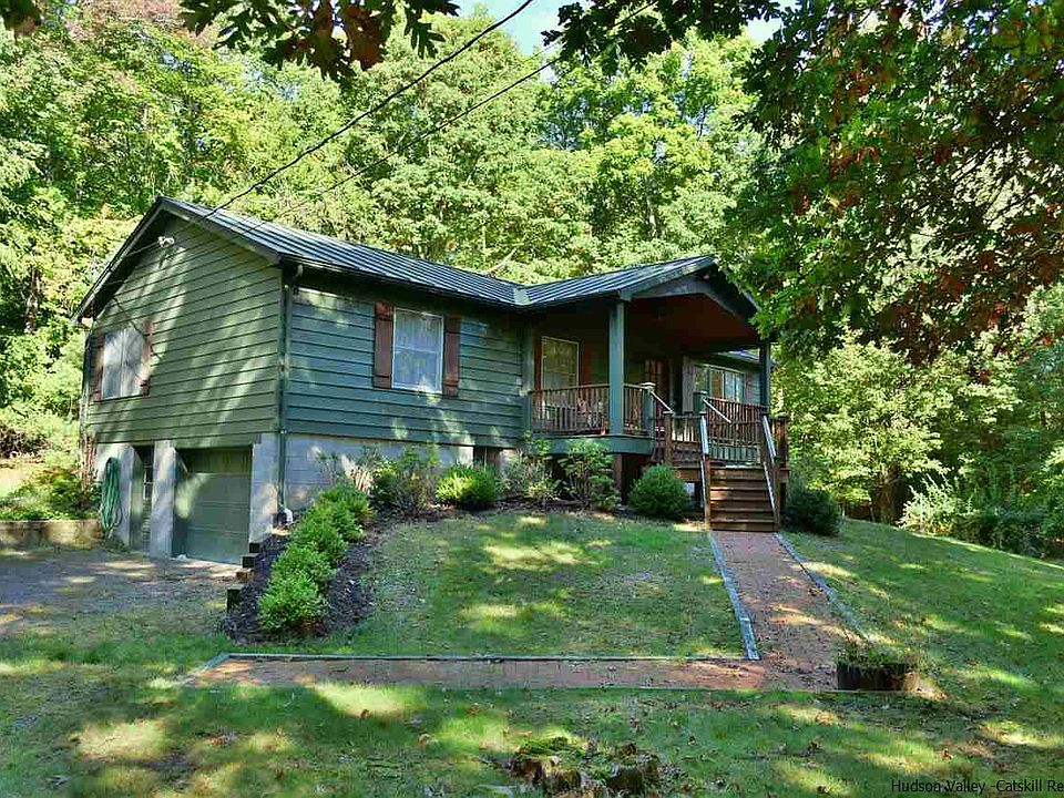 Woodsy green on the outside with a bright, comfy modern core, this 3 bedroom, 2 bath home was completely renovated in 2011 and feels like new! Inviting open layout, great kitchen with granite counters and island, Frigidaire Gallery appliances and pantry, beautiful travertine tiled bathrooms, and wood flooring throughout. Jotul woodstove in the living room keeps the whole house toasty warm, in addition to the high efficiency heating system. Spend your time carefree on the rocking chair porch or on the BBQ deck in a lush environment and have 3 acres to play with. Cable ready and phone booster for uninterrupted phone connectivity. Full basement with workshop and second woodstove for wood assist heat. Upgraded plumbing and electric with a metal roof to last for years completes the picture. Set back from a very quiet road conveniently close to the village of Stone Ridge, ten minutes to the Ashokan Reservoir and all the recreational possibilities of the Rondout Valley and the Catskills.
