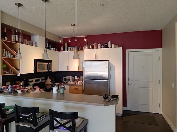 In a prime location within Calgary's sought-after neighborhood, this modern 1-bedroom 1-bath unit offers practical living. Featuring 9-foot ceilings, ceiling fans, a bright living room with a gas fireplace, A/C unit, and access to a south-west-facing balcony, with a gas hookup for year-round BBQ, it's perfect for cozy evenings. The dining area adjoins a well-designed kitchen with stainless steel appliances and a breakfast bar. With a computer nook, in-unit laundry, and a spacious bedroom leading to a private full bathroom, it meets all your needs. Parking is included in a secure underground space, with ample street parking for guests. There's also a separate storage locker and bike storage. Situated in Altadore, you're close to Marda Loop's amenities, Sandy Beach Park, River Park, Downtown, and Mount Royal University. Enjoy comfortable urban living in this welcoming apartment. It can be semi-furnished or completely unfurnished. Gas and water are included in the rental price. Water and gas is included in rental amount.