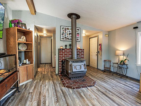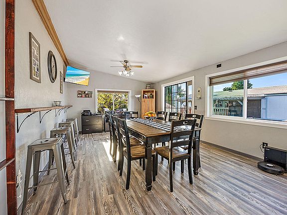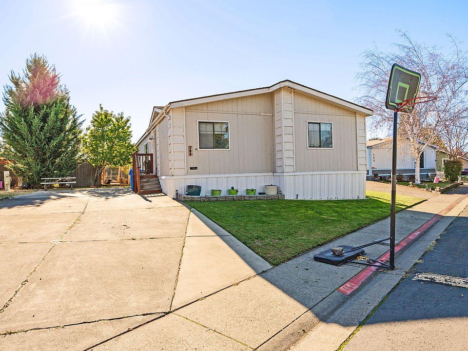 Affordability meets convenience. Enjoy this spacious 1,596 square foot open floorplan boasting 3 bedrooms, 2 bathrooms, located in Aloha Sun Mobile Estates - a park that welcomes all ages, and their furry friends. This split-level home features new laminate floors, new interior paint, a large dining room designed for entertaining that flows seamlessly into the spacious living room with a woodburning stove. Two of the three bedrooms have walk-in closets with additional storage in the laundry room and hallway. Outside you'll enjoy a fenced backyard with two sheds, a newly built covered area for firewood, fruit trees, a well-maintained front lawn, and ample parking for you and your guests. Park amenities include a clubhouse, basketball court and rental space to store RV's, boats, or additional vehicles. Space lease is $650/month and includes water, sewer, and garbage.