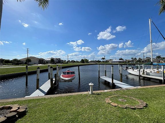 FULLY FURNISHED and AVAILABLE for the 2026 SEASON. Located in the VILLAS OF CEDAR KEY ~ Punta Gorda Isles GULF Access Sailboat Waterfront Condo with Deeded Dock/Boat Slip. Nicely Decorated 2 Bedroom, 2 Bath, 1st Floor Unit. Gorgeous Water View from the Main Living area, the Screened-in Lanai & the Primary Bedroom. Wood-look Tile throughout living spaces and bedrooms. Spacious Kitchen with breakfast bar. The Primary Bedroom has a Walk-in closet & Sliders to the Lanai, plus an Ensuite Bath. Nice-sized 2nd Bedroom with 2 single beds and Guest Bath with Tub/Shower combo. Laundry room in unit and Assigned parking. Sip Your Morning Coffee and afternoon Cocktails on the Lanai while watching for Fish, Dolphins, Manatees & Birds. Soak up the Sun in the Community Pool, Enjoy a Tennis Match or game of Shuffleboard. Fantastic location across from the St. Andrews Golf Course and just minutes to Charming Downtown Punta Gorda & Fishermen's Village for Restaurants, Shopping, Festivals and Entertainment and a short distance to the Sunseeker Resort. Lots of Activities to choose from...Boating, Fishing, Kayaking, Golf, Tennis, Pickleball, a Beautiful Harbor Walk and Bike Trails to name a few. Pack your bags, bring your boat and come Enjoy the Florida Lifestyle. No Smoking. No Pets.