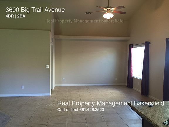 SCHEDULE A SHOWING ONLINE AT: showmojo.com/lh/1195951037 Come see this home today! Open floor plan with four bedrooms, two bathrooms, granite countertops, indoor laundry, covered patio, and 2 car garage. Pets okay with owner approval. Gardener included. BRE Corporate License #01907689 *Other terms, fees, and conditions may apply. Check the listing at rpmbakersfield.com for details. SHOWING INSTRUCTIONS: To schedule a showing please text 661-428-4342 or call 661-344-1553 or visit our website SECTION 8/HOUSING ASSISTANCE: N/A UTILITIES INCLUDED: N/A HOA FEE: N/A HOA AMENITIES AND SERVICES: N/A PET RULE: Pets allowed per owner approval of size and breed. BREED RESTRICTIONS: Check with manager for exceptions: Snakes over 3lbs, Ferrets, Exotic Animals, Birds, German Shepherd, Doberman, Chow, Rottweiler, Akita, American Staffordshire Terrier, Pit Bull, Presa Canario, Great Dane, Wolf Hybrid SMOKING: No Smoking Allowed in the Property LEASE TO PURCHASE OPTION: No LEASE LENGTH: 12 month minimum SPECIAL LEASE PROVISIONS: If not specified here, will be listed in lease agreement. HOW TO APPLY: The applications are found on our website, www.rpmbakersfield.com, located on the listing page. APPLICATION TURNAROUND TIME: 24 to 72 business hours ADDITIONAL FEES NOT INCLUDED IN RENT: * $30 Application Fee per applicant 18 or older, Non-Refundable * Deposit: 100% Refundable * $300 pet deposit, $150.00 additional pet * Pet deposit is 100% Refundable PROPERTY MANAGER: Martha SHOWING COORDINATOR: Liliana All information is deemed reliable but not guaranteed and is subject to change. Cats Allowed Dogs Allowed Gardening Included Pets Allowed Per Owner Approval Of Size And Breed