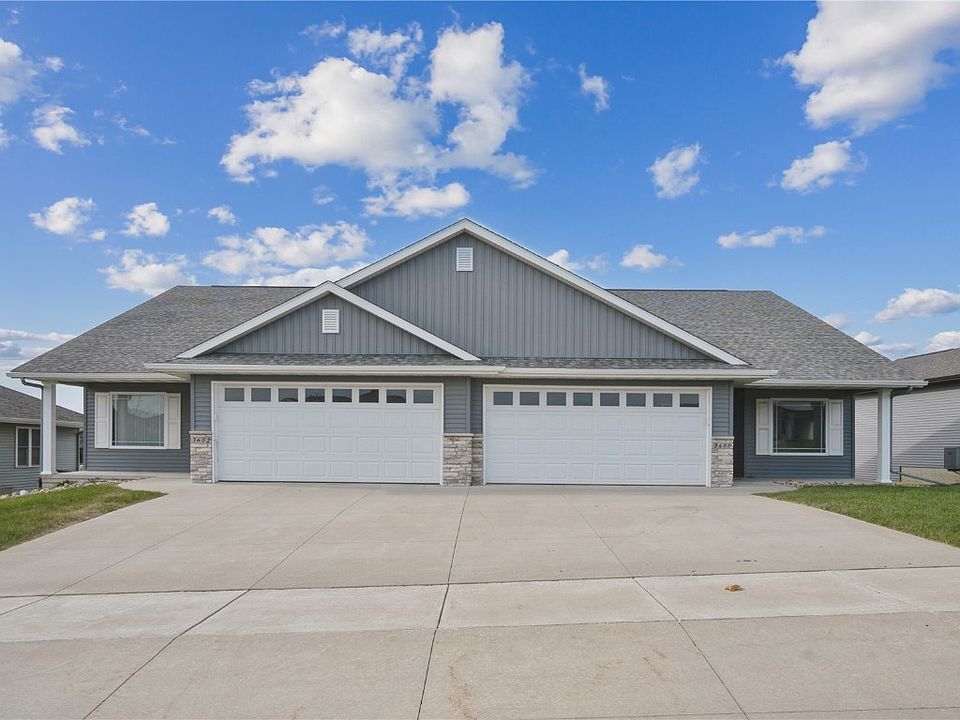 Welcome to this beautiful zero-entry, ranch-style condo built in 2019! Priced almost $13,000 below assessed value, it's an amazing value. This home features 2 spacious bedrooms and 2 full bathrooms. The primary bedroom offers a unique convenience with direct access to the laundry through the large closet. The great room is cozy and inviting, with sliding doors that lead to a screened-in porch—perfect for relaxing or entertaining. The kitchen is a chef's dream, with maple cabinets, a breakfast bar, and a large eating area for meals and gatherings. Wide 36-inch doors make the home accessible and easy to navigate. A 2-stall garage provides plenty of space for parking and storage. This condo is move-in ready and designed for comfort and style—schedule a showing today! Start up fee of $500. Up to two pets are allowed, see covenants for weight limit.
