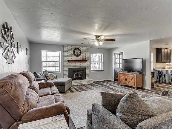Nestled in the heart of Choctaw, this single-family home is a serene haven on 5 acres in the esteemed Choctaw School District. Step into comfort with 3 beds and 2 baths, where cozy nights are guaranteed by the beautiful wood-burning fireplace in the living room. The kitchen is a vision, adorned with granite countertops and stainless-steel appliances. A spacious pantry ensures you have room for all your favorite treats! Ceiling fans placed in almost every room create a refreshing breeze, while the large covered back patio beckons you to mornings filled with coffee and sunshine. With no fence, the expansive 5 acres offer endless possibilities—whether it's cultivating a lush garden, creating a recreational paradise, or building additional structures to suit your needs. A carport in the front and an RV port attached to the shop in the back make this property perfect for every hobbyist. Explore the shop's possibilities for your projects and passions! Don't miss out on the unique opportunities that come with owning 5 acres of prime Choctaw real estate. Act quickly—this dream home is set to sell fast!
