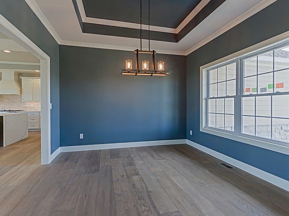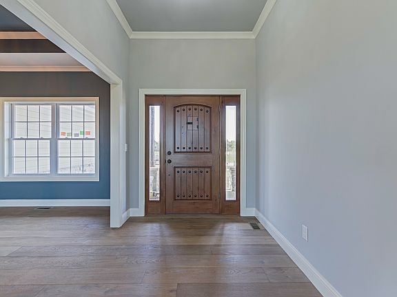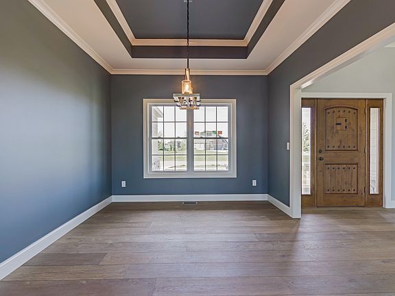 New custom built, ranch style home in Trail on Sunset Lake! Main floor is an open concept with coffered ceilings, stone fireplace, European white oak wood floors, Knotty Alder 2-paneled arched doors, tray ceiling dining room & a gorgeous chefs kitchen. Master suite featuring a stunning private bath with a large walk-in tiled shower, double vanity, garden tub and a walk-in closet with custom cabinets. The kitchen features Amish built cabinetry, 4X10 island, built-in 64" wide ss fridge. Main floor has 2 additional bedrooms, full bath & laundry w/ drop zone. Large sliding glass doors leading to a covered patio and a professionally landscaped yard. Fully finished basement offering 9ft ceilings with two bedrooms, full bath, large family room, beautiful wet bar for entertaining & abundant storage space! Bonus room in lower level could be used for gym, in-home office or home theater! Three car attached garage on a corner lot. Siding to be painted a beautiful deep blue-ish gray color.