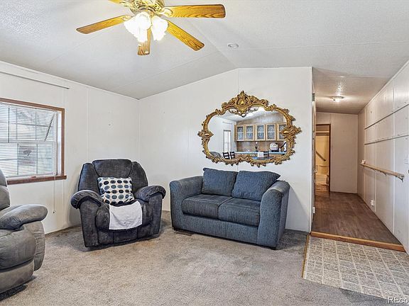 Set in the peaceful 55+ community of Thornton Estates, this beautifully maintained 3-bedroom, 2-bathroom manufactured home blends style and functionality on a generously sized lot. From the charming covered front deck to the newly installed skirting, gutters, and storage shed, every detail has been cared for. You'll also appreciate the spacious reserved parking area with room for up to three vehicles—ideal for guests or extra convenience. Inside, vaulted ceilings give the home an open, airy feel, while the family room welcomes you with soft carpeting and an abundance of natural light. Just steps away, the kitchen offers plenty of cabinetry, a tiled backsplash, newer laminate flooring, and included appliances—making it both practical and inviting. Tucked behind the kitchen, the primary bedroom serves as a cozy retreat with carpet throughout, a walk-in closet, and a private en-suite bathroom featuring a shower-tub combo and generous countertop space. On the opposite end of the home, two additional bedrooms provide comfortable living quarters, along with a second full bathroom that’s equally well-kept. Complete with central air conditioning and all the essentials in place, this home is move-in ready and waiting for you. Don’t miss out—schedule your private showing today!