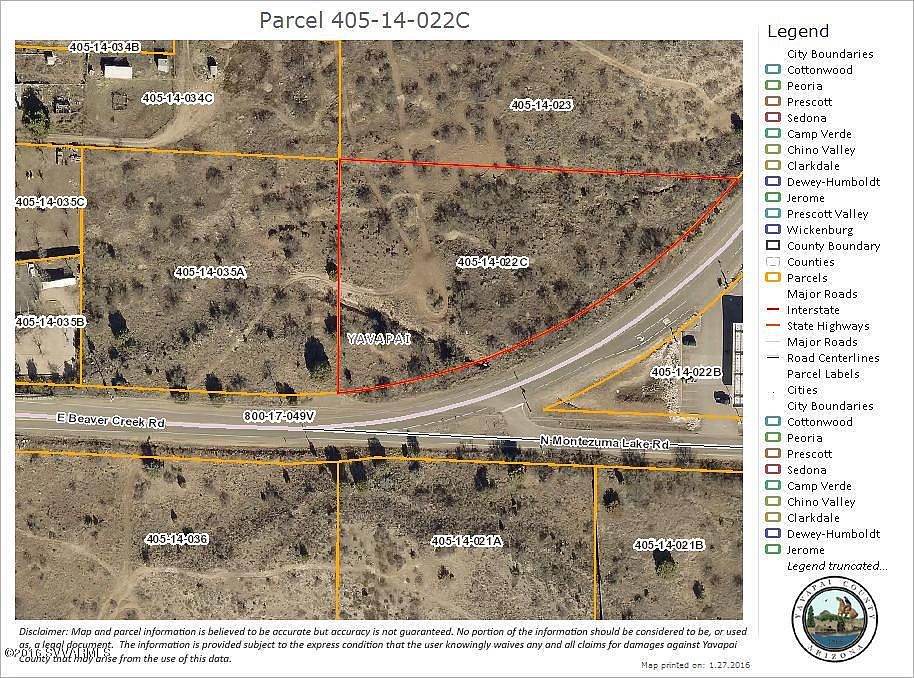 ****Commercial***** This is site specific zoning. Possible Owner Carry. Submit terms. Buyer must apply to Yavapai County for particular site and specific type of zoning. Lots are across from Mini-Mart. 3.96 Acres. Two Parcels 405-14-022C & 405-14-035A. Possible splits into .8 acre lots. May be sold separately.