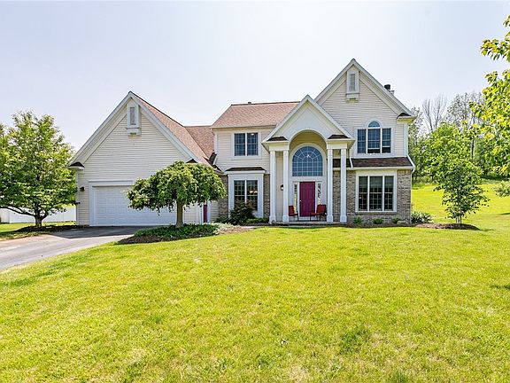 You will love this 2,000 SqFt Canandaigua Colonial! Situated at the end of a cul de sac in a desirable, mature & low traffic neighborhood with a private backyard, this home has it all! Steps away from Canandaigua Lake & Butler Beach w/ lake access and lifeguards! 4 beds, 2.5 baths & a finished basement! Loved and maintained by the original owner! A statement making two-story foyer welcomes you. Beaming hardwood floors, refinished in '22, fresh paint '22 and new light fixtures highlight the main living space. Open concept between the kitchen with granite counters and an island overlooking the eat-in space and large living room. Perfect for entertaining. A den/office, formal dining room, laundry & 1/2 bath wrap up the main floor. Upstairs you have 4 good-sized bedrooms including the master with vaulted ceilings, a large ensuite & walk in closet. Fresh paint and new carpet 2020 in the finished lower level. Perfect for a family room, office or playroom. Don't miss the private backyard highlighted by a new patio with built-in firepit '15, hot tub, newly added invisible fence & ample green space. Enjoy the backyard from your own hot tub. Tear off roof 6 years old! Offers due 6/26 2pm.
