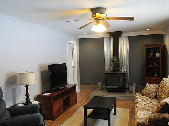 Available, vacant and ready for a new tenant today. Ranch home with 2 bedrooms, wood laminate floors, wood burning fireplace, large deck, washer and dryer too! Land is over 2 acres, house and yard is about a half acre to enjoy. Owner has a business at the other end of the property and uses the sheds for storage. Driveway next to the house over to the side yard is for the tenant to use and plenty to enjoy. Owner takes care of the electric bill at the house. The tenant is only responsible for gas bill (for the furnace). Home is also serviced by a well and septic which means no monthly bills for water and sewer. One dog or cat would be allowed with a pet deposit. Owner would like to leave it partially furnished, but can remove items if needed.