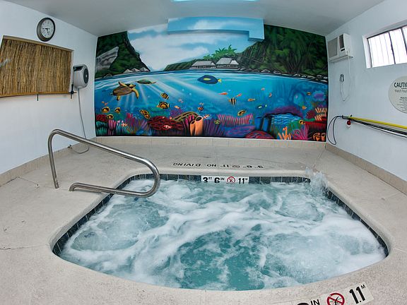 Caribbean themed Indoor Jacuzzi, swimming pool, fully gated and enclosed parking area and laundry room