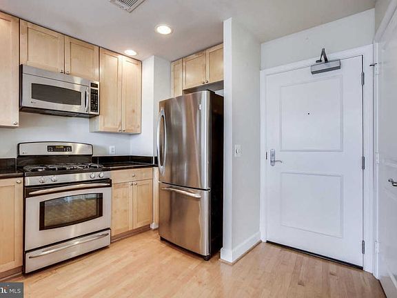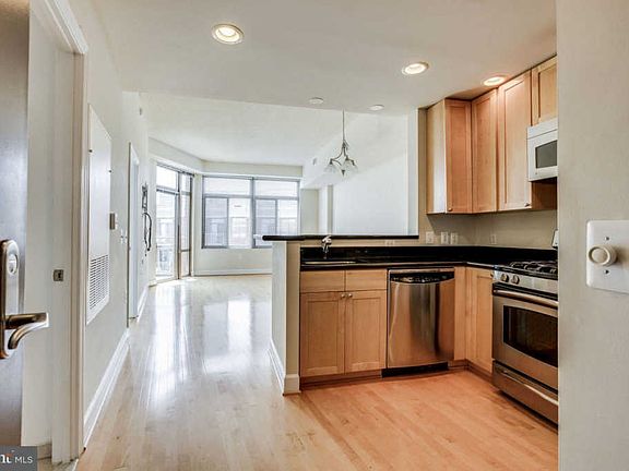 Lovely 1 br condo located mins from DC. Unique to the building, unit is located where the building fans out so there's an extra set of windows in the living room vs traditional 1 br. This allows lots of natural light. Gorgeous hardwood floors, SS appliances, w/d in unit. Full amenities building. Vacant show anytime.