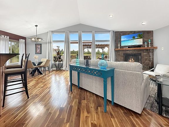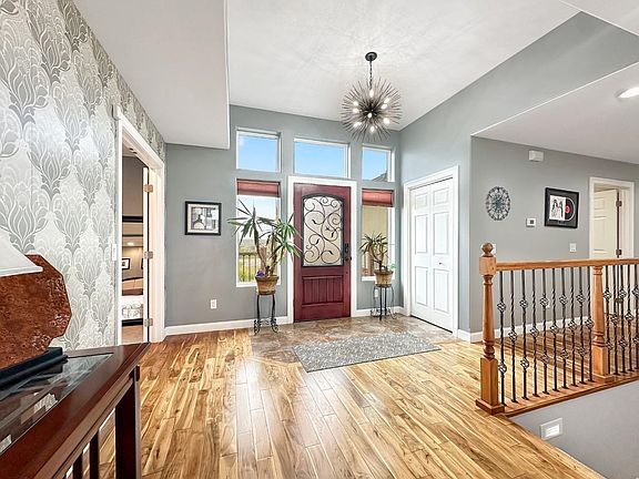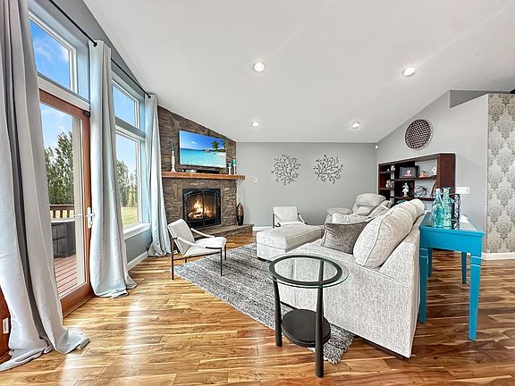 Welcome to 3600 Highview Avenue, where country charm meets modern convenience just minutes from all that Minot has to offer. Nestled on two acres of beautifully landscaped land, this custom-built ranch-style home is surrounded by mature trees, established grass, and picturesque perennials that enhance its curb appeal. Step inside to discover an open layout featuring hardwood floors, an abundance of natural light, and cozy gas fireplace that creates a warm and inviting atmosphere. The kitchen is a chef's delight, equipped with timeless shaker-style cabinets, extensive granite countertops with a tile backsplash, gas range, dedicated pantry, and two-tier island with an extra prep sink. The primary suite is a true retreat, complete with a grand double-door entrance, decorative tray ceiling, and spa-like ensuite bathroom featuring double sinks, jetted soaking tub, and luxurious tile shower. Down the hall, you'll find two additional bedrooms and second full bath with ample storage for towels and toiletries. The lower level is designed for entertainment, boasting a custom wet bar and spacious L-shaped family room where the pool table is yours to enjoy. This level also includes third bathroom, fourth bedroom with egress window, and plenty of storage space. Additional amenities include a heated triple car garage with an extra side garage door for easy access to your outdoor toys, asphalt parking pad, massive deck with pergola for outdoor entertaining, and detached storage shed at the perimeter of the property. Truly move-in ready, 3600 Highview Avenue is the home you won't want to miss! Schedule your viewing today to experience this perfect blend of country living and modern luxury.