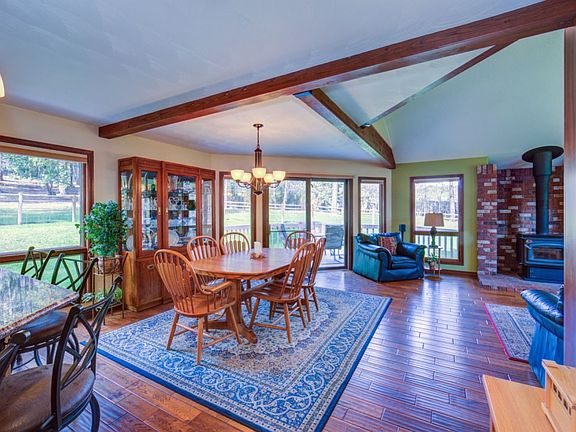 Beautiful Secluded Country Setting! Gated entry leads past a shop/storage building w/loft & RV/carport, across the creek & past the 36 x 36 RV/car garage with 4 garage doors, to the wonderful well-maintained 1986 home nestled on 10.54 acres. Custom Home features 3 bdrms, 3 baths, approx. 2100 sqft., engineered hardwood floors, Great room w/vaulted ceiling, woodstove w/brick hearth, lots of windows dinning area with slider to deck. Separte Family room w/fan & door to large patio. Kitchen with R/O, microwave, DW, Frig, granite counters, tile floor, lots of cabinets and breakfast bar. Nice master bdrm w/vaulted ceiling, fan, walk-in closet and master bath w/skylight, double sinks. Covered deck and patio out front. Oversized detached 4 car garage/RV garage w/bathroom. The property is fenced and cross fence with 5 ponds, creek, pasture, 2 wells and water rights, wood sheds, chicken coop w/run and more... Possiblly split lot and have 2 family setup!
