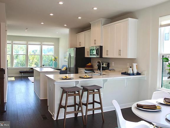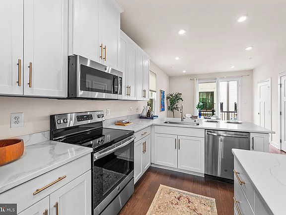 Bright and beautifully maintained end-unit townhome in the sought after Editors Park community of Hyattsville. This 3 bedroom plus den, 3.5 bath Clarendon / Dupont model is loaded with beautiful features and upgrades throughout its nearly 2000 SF of sun-filled, high-ceilinged, energy efficient space. At the entry level, you'll step into a foyer with direct access to the oversized garage, with space for 2 vehicles plus storage and/or added (gym/workshop?) space. Head up to the open plan main level with hardwood flooring throughout and boasting an upgraded kitchen with quartz counters, GE stainless steel appliances, 42 inch cabinets, an island, and peninsula with seating for 4-5. From the dining room, step through sliding glass doors to a balcony perfect for grilling or cocktails. And, enjoy a comfortable living room with southern treed views, unobstructed by homes in front. On the next level, you'll find two bedrooms both with ensuite full bathrooms, ceiling fans and extra large closets, as well as the Electrolux front-loading washer & dryer. The top level has the 3rd bedroom with ceiling fan, a full bathroom directly accessed from the bedroom and the den, which is perfect for your home office, den or playroom, and a spacious private terrace facing south. This ultra-convenient location is a commuter's dream: 3 blocks to the Hyattsville Crossing Metro (Green line), 1 mi to Route 1, 1.5 mi to Riverdale MARC. Easy access to Ft Meade, Andrews AFB, the Pentagon, and more. Enjoy the community dog park and tot lot, nearby trails & parks, as well as the many nearby stores (including Target, Home Depot, Gold's Gym), restaurants and grocery options (including Whole Foods, Safeway & Giant) at PG Plaza (.25 mi), the Hyattsville Arts District, Riverdale Park and downtown College Park. This is a perfect blend of suburban living plus easy access to DC. Many energy efficiency features, including double-pane low-E windows, Energy Star heating & cooling, tankless hot water heater, well insulated, and blower door & ductwork air tested. Welcome home! DO NOT APPLY VIA ZILLOW - Please reach out and you'll be sent an application link. Pictures may not reflect actual paint colors. Owner pays for all utilities water, gas, electric, internet. Mowing is included, but renter is expected to maintain presentable appearance of home and lawn, and can be fined by HOA if not kept up to standards. No smoking allowed in the home or on the premises. Last month's rent due at signing. One vehicle permitted in the front lot with parking permit. 12-month lease initially, option for month-to-month following initial lease term.
