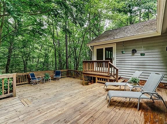 Located on two lots, this easy access, one level home, was built by Mike Dumont and designed by Ed Winks. Home includes TWO master suites with third bedroom/office and three full baths and powder room. The well designed kitchen is open to family room with casual dining area, fireplace and bookcases and has access to screened in porch. Dining room overlooks sunken living room with fireplace. Deck connects to screened porch, living room and master suite with natural views including a meandering creek. Utility room and large two car garage with work area is same level as home for easy entrance to kitchen, family room, dining room and all three bedrooms. Live on ONE FLOOR!!