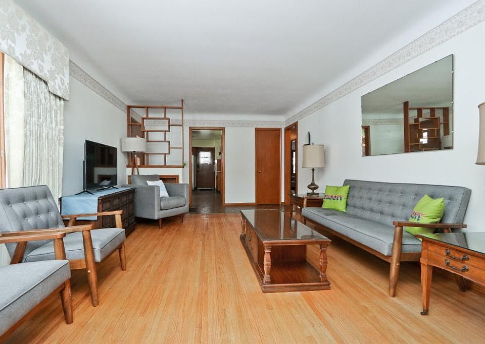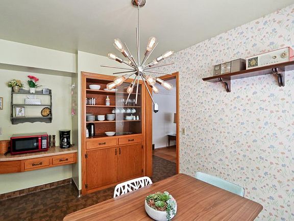 Rare opportunity for spacious a mid-century home well maintained by most recent owner for more than 30 years with ability for an owner to add 400+ sq ft yet it already is a spacious home with 3 BRs on one level, 1.75 bathrooms and large 2 car detached garage. MCM retro features paired with energy-efficiency improvements including high-efficiency furnace & energy-efficient windows. Original hardwood floors in good condition, starburst around front door knob, mid-century front door beautiful built-in dining room buffet, updated windows throughout (efficient casement windows) and more! Expansion potential for 400+ more sqare feet in the basement. Don't miss!