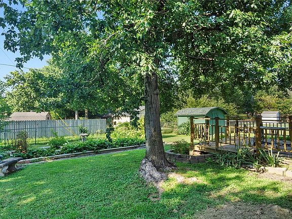 Prime location! Nestled in the heart of Northwest Arkansas, this well cared for home is conveniently situated just off I49 and Hwy 412. It exudes character and charm, featuring a spacious, inviting dining room adjacent to the living room—ideal for family meals, game nights, or as a cozy study space. The kitchen seamlessly connects to the living area, keeping everyone together. Step outside to discover a lush garden teeming with zucchini, green beans, grapes, blackberries, and more. You'll also find a picturesque deck, shaded by a beautiful Maple tree, offering a serene spot for family gatherings or peaceful solitude. Additionally, an external storage room and separate shed provide ample space for gardening equipment. Truly, a gardener's paradise!