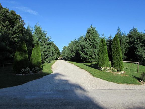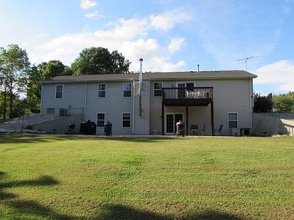 Very hard to find combination of a great house on a great property. Drive down a tree lined white rock drive to find this custom built, well maintained 5 bedroom, 3 bath home surrounded by 10 acres. 4 bedrooms on main level with split bedroom plan. Spacious master suite at one end with a walk in closet and master bath with marble top double vanity, jetted tub and separate shower. Three more bedrooms and a bath on opposite end. Cathedral ceilings in master bedroom, kitchen/dining area and living room. Living room has brick gas fireplace. A bedroom, office and storage room addition new in 2016 with new 2nd furnace and central air for the additional space. New beautiful hardwood floors installed 2014. Tastefully finished walkout basement includes huge family room with kitchen area that features concrete counter tops make it convienient for entertaining here. Floor has unique design layout ceramic tile. A carpeted large 5th bedroom and a full bath also located downstairs could serve as second master or guest suite. A wood burning stove keeps the basement toasty warm in winter. Walk outside to concrete patio area to grill out and enjoy views of the surrounding woods. Just the right amount of cleared well groomed open yard space, big garden, fruit trees, and concrete basketball pad. Plenty of woods remain to keep house secluded. Within the woods you will find a small creek, deer, mushrooms and berries. Roof is just 6 yrs old. Call soon to see.