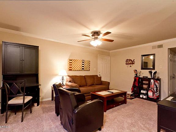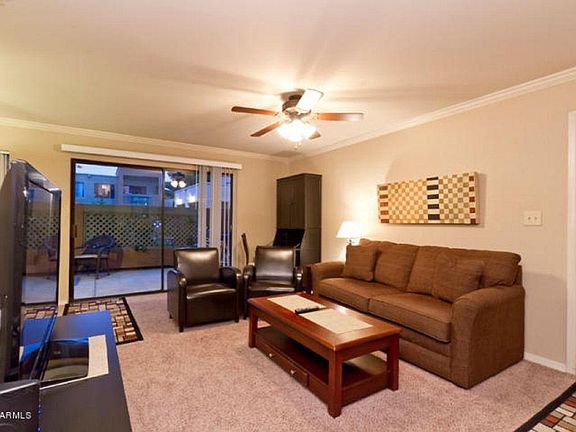 Available now thru Dec 2024. This ground level condo is fully furnished with all the essentials. Ample living room space including a flat screen TV with cable & internet, 2 bedrooms, 2 bath with a 1 car covered carport. Community is located along the Hayden greenbelt and Coronado golf course. Community amenities include 2 pools & spas, fitness center, movie theater and clubhouse. 1 month Minimum - FURNISHED 1.75% Rental tax $195 Cleaning fee This is a non-smoking/vaping, pet free home.