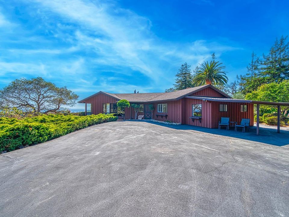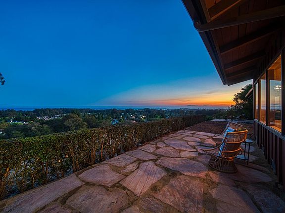 A spectacular & park-like setting! Set above the coastline on a gently rolling hilltop is a mid-century ranch home on 4.5 acres with massive unobstructed views of Monterey Bay. Panoramic views encompass Moss Landing and sweep west beyond Steamer Lane to an ever-changing horizon of sea, sky, and coastal terrain. On clear mornings the Pacific glistens and white sand beaches outline the coastline. Offered for the first time in nearly 50 years, the property has remained quietly preserved and rarely seen. Its elevation, privacy, and protected sightlines make it one of the county's most enduring view parcels. The home retains its 1950s character, enhanced by recent upgrades: new roof, flooring & fresh paint, & current certifications for septic, well, & fire hardening. The single-level layout is intuitive: living, dining, kitchen, and family rooms all face the ocean. A central courtyard anchors the home, offering a wind-sheltered space for outdoor meals, morning coffee, or simply listening to birdsong. Access is discreet: a private drive just one minute from Soquel Drive, yet the setting feels worlds away. Few visible neighbors; just sky, sea, and forest. For those seeking legacy land, ecological beauty, & long-term privacy, this is one of Santa Cruz County's most spectacular settings.