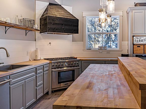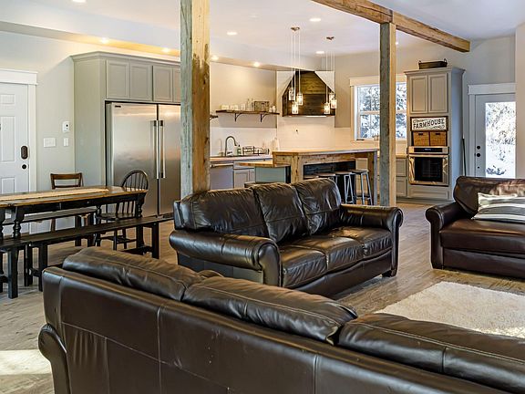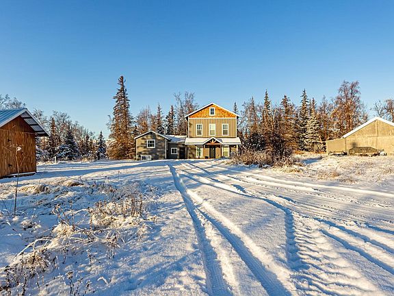 Beautiful Mountain views from this 3 story home. Infloor heat on all three floors! Soaring high ceilings. Huge open kitchen-dining-living area. Full size refrigerator and freezer in the kitchen! High end appliances. Butcher block counter. Almost 2 acres in a quiet area on Lazy Mountain. Attached to a 2 bedroom 2 bath apartment with full kitchen/living/dining. Perfect for generational living.