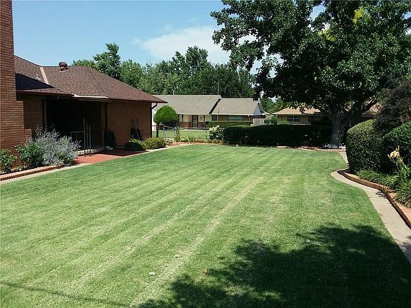 Desired Edgewater area within walking distance to Lake Hefner! This beautifully manicured home offers 3 large bedrooms, spacious, flexible floor plan W/ 2 living & 2 dining spaces. Split plan W/ a large bedroom having separate access that's perfect for home business/office or studio. Award winning landscaping welcomes you with a meticulously groomed lawn; established foliage, Ie: elephant ears, lilies, a black lace elderberry, & a vegetable garden as well. The owner has spared no expense with upgraded, nail-down wood flooring in the living/dining & bedrooms, & updated tile in the kitchen. Notable upgrades include Pella, double pane/double hung windows, newer HVAC & H2O heater; Roof, gutters, overhead garage doors, opener, & patio cover in 2010; Storm shelter 2015 & an additional 6" of blown in insulation added. The 1 year old fridge & TV above the fireplace stay with the home.