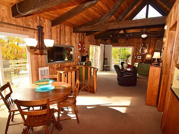 Available for short term rentals at http://www.Haleyspoint.com This is a clean, rustic 2 story cabin with a spiral staircase separating the two levels. Ideal for a couple or a small family looking for a private getaway. The master bedroom is downstairs and has a queen size bed and a private bath. The second bedroom is downstairs in an open space with a set of bunk beds and a full size Murphy Bed that pulls out of the wall. I only recommend this cabin for a maximum of 4 people.