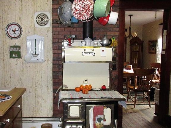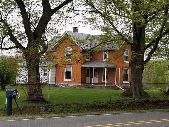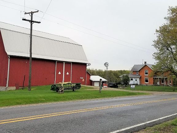 A gem! This 4 bedroom brick farm house on 40 acres has been very well maintained. Hip roof barn with newer roof, shed, corncrib, 2-car detached garage, antique shop/workshop, working windmill, artesian well, farm pond, fenced pastures and much, much more. Pride of ownership shows. Beautiful original wood trim and doors including pocket door between living room and formal dining. You will love the farm house sink, pantry, old fashion cookstove in the kitchen. Refrigerator and kitchen stoves included. Main floor has living room and family room with sliding door to patio from family room. Upstairs has a large beautiful landing and 3 bedrooms with walk in closets.RESVD: Wagon Wheel light in shop and round oak wood stove.