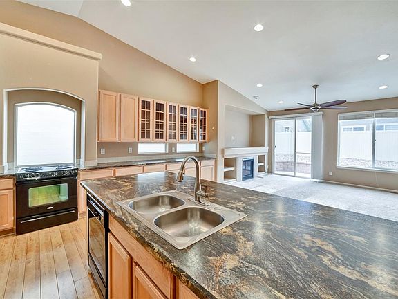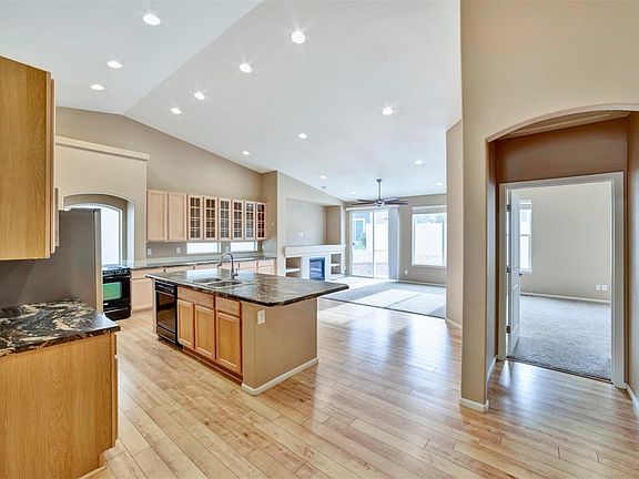 Low maintenance 4 bed,3 bath ranch with finished basement in great neighborhood.High ceilings and wood floors pave the way through the open floor plan.Large kitchen with island and bar seating,lots of counter and cabinet space make for a fabulous kitchen.Spread out in the basement family room or enjoy a cozy fire in the living room upstairs.Relax in your own master suite with walk-in closet,private bath and soaking tub.Low maintenance landscape,large back patio for entertaining.Close to I25.