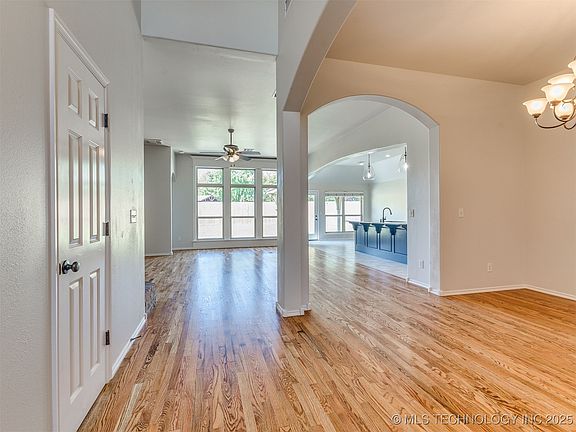 Come see this single-story home in the Broken Arrow-friendly community of Seven Oaks. Neighborhood pool and clubhouse to enjoy during the hot summers! Freshly painted with neutral colors throughout. Never lived on newly installed carpet and newly refinished hardwood flooring in the living room and dining room. Gas fireplace in the living room to stay cozy in with chilly weather. The primary bedroom has a large closet with built-in shelves, and the ensuite has a soaking tub with a separate shower, and separate vanities with countertop space. Owner/Agent