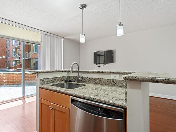 Great location at the Eclipse! Close to Reagan National Airport, Crystal City, Pentagon, Old Town Alexandria and Washington DC. Cozy, well maintained, studio unit with large patio, wood floors, walk-in closet, upgraded kitchen with stainless steel appliances, granite counters and breakfast bar. Spacious bathroom with tub/shower. Full size washer & dryer in the unit. One, lower-level, garage parking space and additional storage is included at no extra cost. The large roof top terrace is perfect for some relaxation and fresh air. Enjoy the many amenities such as the 24 hour concierge, outdoor pool, fitness center, Harris Teeter in the building, nearby day care, Dr's offices, dental office, pizza restaurant and massage salon. Convenient location to TJ Maxx, Barnes and Noble and many more retail and dining options. Perfect location for commuters and travelers with easy access to 395 and the airport. Minimum 1 year lease term. No smoking. Pets case by case. $100 maintenance deductible. $30 application fee. Move in fee. 1 garage parking space. Water and trash included in the rent.