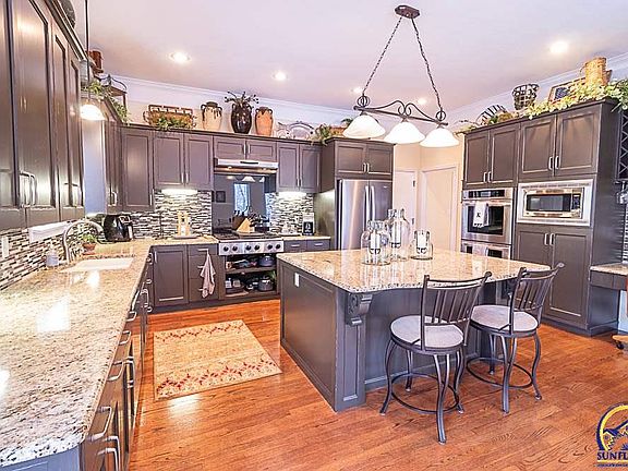 Love to entertain? You'll enjoy the wide open floor plan with soaring 10' ceilings and lots of windows which provides light and bright areas. The oversized chef's kitchen includes a commercial gas range, double ovens (one convection), lots of cabinets and a huge island for extra work space and breakfast bar. The walkout basement has been recently and gorgeously finished with a living space, an office and an additional bedroom. The oversized wooded lot will provide plenty of shade for outdoor activities.