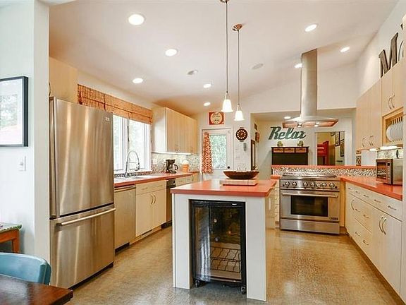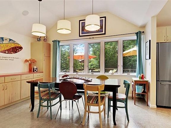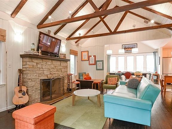 Loads of fun with just the right amount of space. Redesigned, refurbished and redecorated in 2004. Designing with color creates a whimsical summer hide-away.The 4/10 acre site provides sunshine, woods, privacy and plenty of parking. Open living space separates the master/bath from two guest bedrooms that share a bath. Vaulted ceilings oppose wood floors in the living area with fireplace. Embrace bonding where living flows through dining and kitchen outdoors to massive deck with fire-pit. Celebrate rainy days and all seasons with the ground floor rec room where third bath leads to garage conversion with room for keg, laundry, beach toys and golf cart. There's a front yard shed for the lawn mower you will never need. Turn key purchase possible!