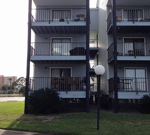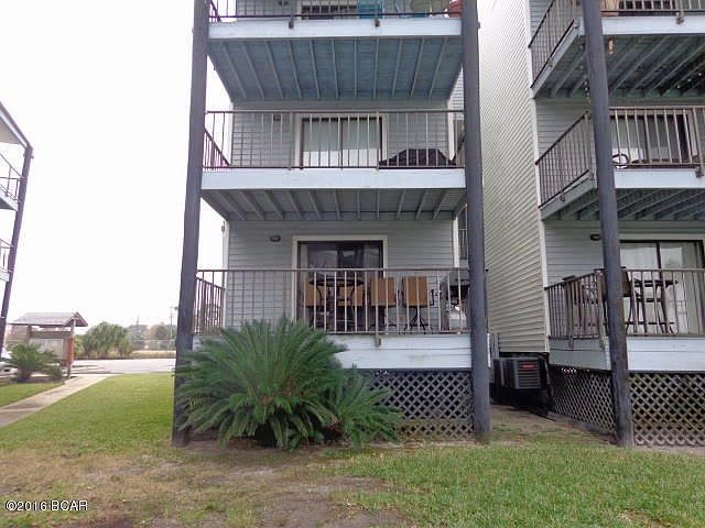 Treasure Cove Condo corner bottom floor that sleeps six. Balcony with view Grand Lagoon & community in ground pool. Condo comes furnished. Wood laminate flooring thru out. Close drive to beach, restaurants, shops. Use as your full time home, weekend getaway or investment income. Fees include insurance on the structure & maintenance. Separate owners policy covers from the sheetrock in & contents. Same applies for maintenance.