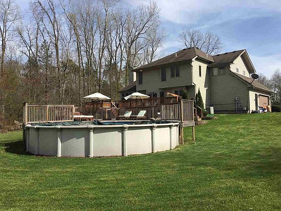 Stunning, well-maintained 4 bedroom 2.5 bath 2,269 sq ft home sitting on a secluded 7.6 acre lot (2.3 wooded). Eat-in kitchen overlooks beautiful yard, which features a pool on a 2 level deck. The open, spacious family room with vaulted ceiling, gorgeous chandelier and fireplace and large finished basement makes it a pleasure to come home to and perfect for entertaining. Home comes equipped with Culligan water filtration system. 2015 tax prices were for non-homestead, rate will drop drastically when changed to homestead. Must see...call now for a showing!