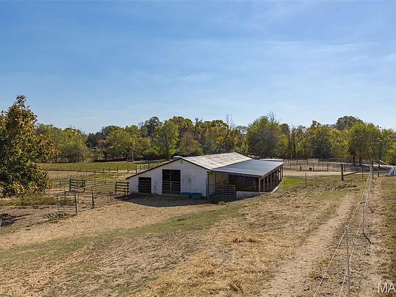 The well-equipped barn is every horse lover’s dream, featuring five 10x10 stalls with rubber mats, metal hay feeders, and bucket holders; a concrete grooming/saddling/shoeing area with extra lighting; a concrete aisle; a spacious tack room with swinging saddle racks, bridle racks, and harness hooks; a separate feed room; two water hydrants serving the pastures; and dedicated electric service. There’s also plenty of room for trailer and equipment parking.